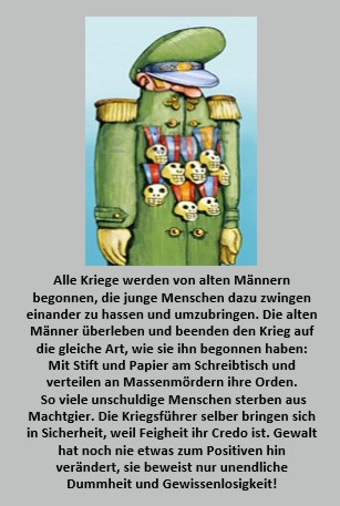 Mein Tatsachenroman »NIE WIEDER WAHNSINN! 1914-2020« ist bei amazon/Kindle als Taschenbuch und E-Book erhältlich. Lesealter 16 bis 100 Jahre.